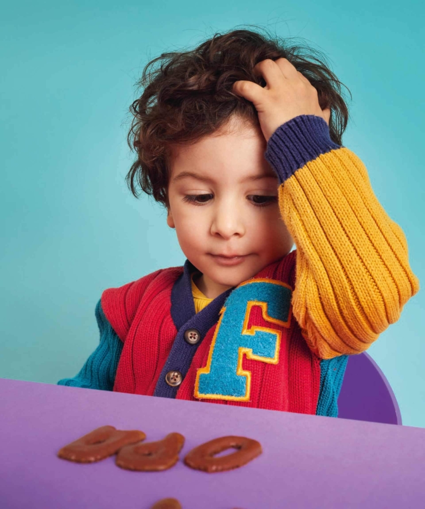 Im Laufe der Zeit lernen Kinder so auch die Regeln und Konventionen der Schriftsprache gewissermaßen nebenbei kennen. Zum Beispiel, was eine Zeile ist, dass man sie von links nach rechts und eine Seite von oben nach unten liest. Und irgendwann kommt es zu ersten konkreten Wiedererkennungseffekten, die über die Erkenntnis „Das ist Schrift“ hinausgehen. Ihr Kind betrachtet jeden Tag in der Kita kurz das Schild an seinem Fach, und dann ist da die Erzieherin, die immer das Gleiche unter die gemalten Bilder für die Eltern schreibt, zu Hause sieht zum Beispiel dieses Eingestickte am Kissen genauso aus – bis schließlich der erste Buchstabe des eigenen Namens und irgendwann der ganze Name als wiedererkennbare Einheit abgespeichert ist! Und dann wird, obwohl man die Buchstaben ja noch nicht entziffern kann, langsam laut vorgelesen: E-le-na.