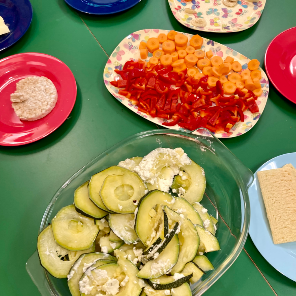 Als wir zusammen die Zucchini geerntet haben und daraus ein leckeres Gericht zauberten, konnten die Kinder direkt miterleben, wie ihre Arbeit Früchte trägt – oder in diesem Fall, wie aus einer Pflanze eine leckere Mahlzeit entsteht! Das weckt nicht nur Interesse an gesunder Ernährung, sondern schult auch das Verständnis dafür, woher unser Essen kommt. Gemeinsam im Garten zu arbeiten, fördert zudem die Zusammenarbeit und das Teilen – die Kinder helfen einander, tauschen sich aus und freuen sich gemeinsam über die Ernte. So wird unser Gemüsebeet zu einem lebendigen Ort des Lernens, an dem die Kinder auf spielerische Weise wichtige Erfahrungen sammeln.