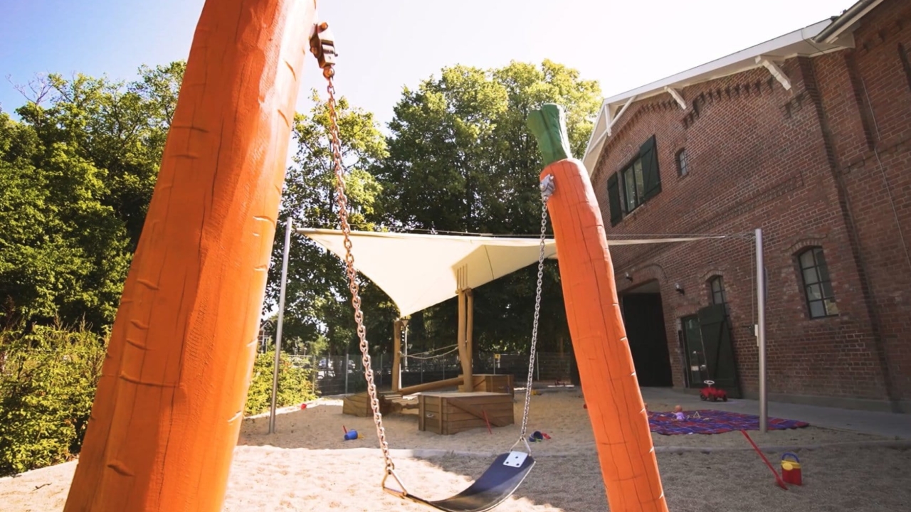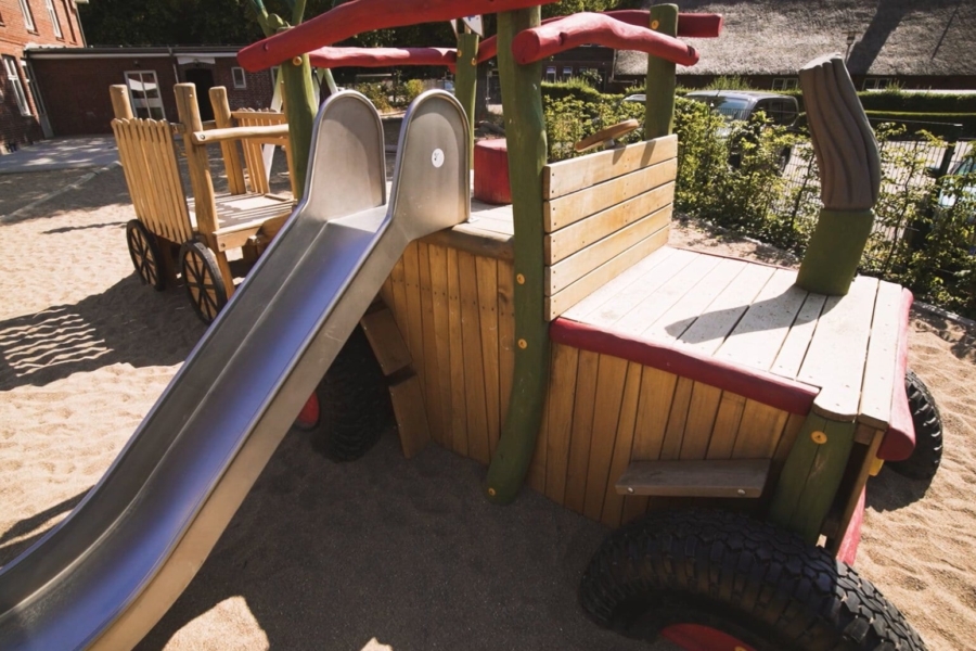 Unser großzügiges Außengelände ist ein echtes Paradies für Kinder. Das Thema „Scheune“ spiegelt sich liebevoll in den Details wider und sorgt für eine tolle, naturnahe Atmosphäre. Mit einem großen Traktor samt Anhänger zum Klettern und einer Schaukel, die fantasievoll an Karotten erinnert, gibt es jede Menge zu entdecken. Umgeben von Wiesen und Bäumen können die Kinder nach Herzenslust toben, spielen und die Natur erleben.