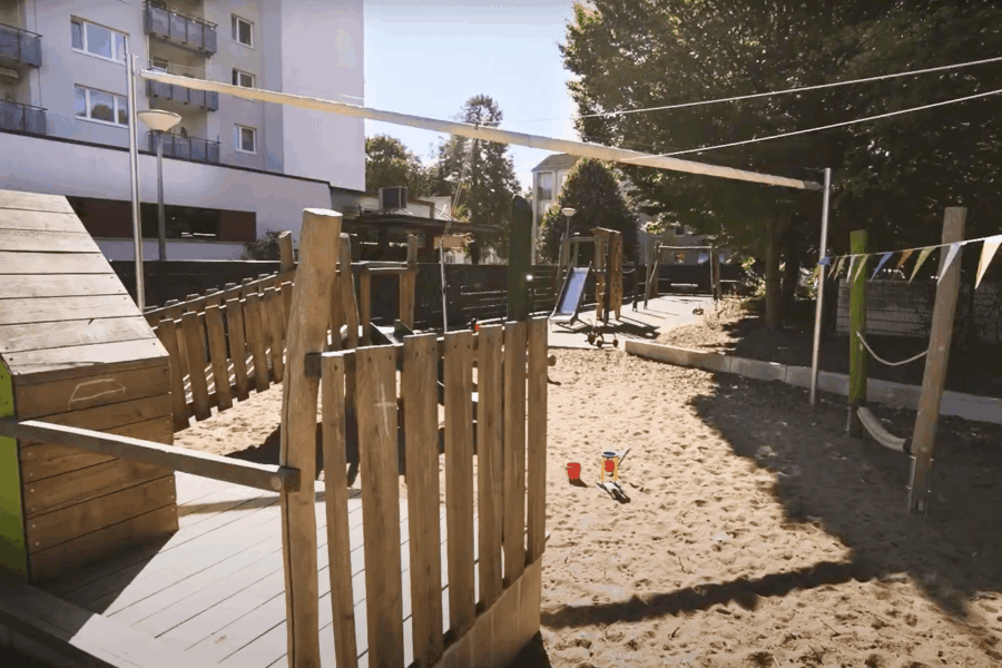 Nach der Ruhephase startet der Nachmittag mit neuer Energie. Die Kinder können den Innenhof erobern, in den Gruppen spielen oder sich kreativ und sportlich austoben.