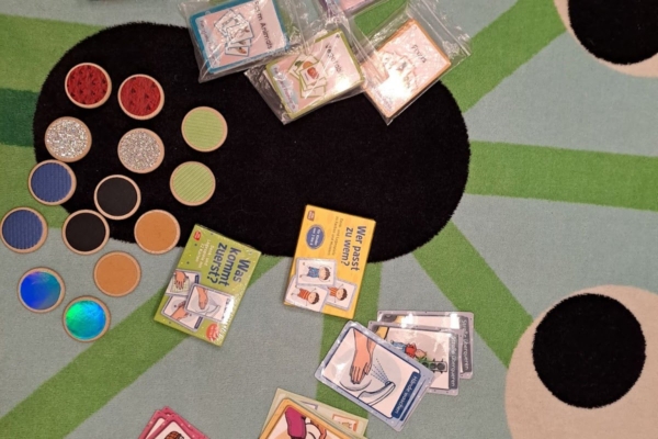 Zusätzlich gibt es einen Bewegungsraum, der mit Matten und Materialien für Parcours ausgestattet ist und somit vielseitige Bewegungsangebote für die Kinder ermöglicht.