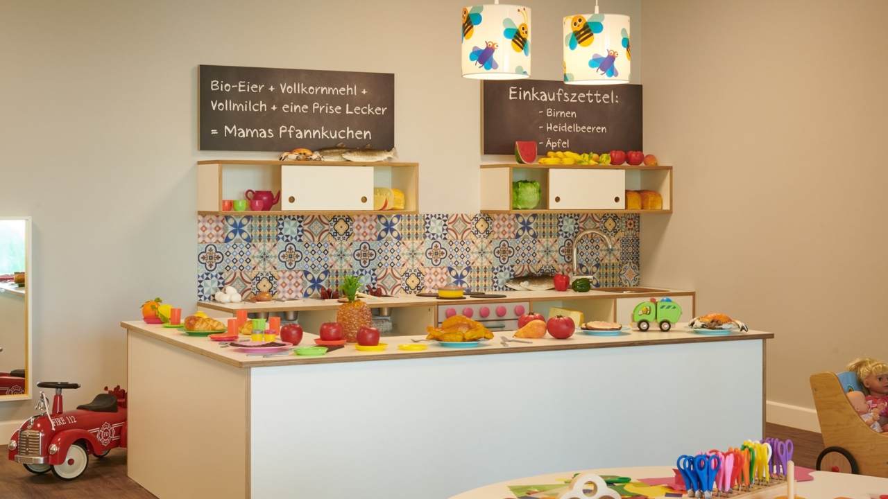 In unseren großen, modernen und fantasievoll eingerichteten Räumen mit speziell angefertigten ergonomischen Kindermöbeln schaffen wir für alle Kinder – ob klein oder groß – eine liebevolle Wohlfühloase. In unseren inspirierenden, bunten kinderzimmern darf jedes Kind klein sein und sicher groß werden. Es liegt uns am Herzen, Kindern ein sicheres Umfeld zu bieten: Mit Abstand mehr Sicherheit für jedes Kind durch kleine Gruppen, große Räume und Luftfilteranlagen.