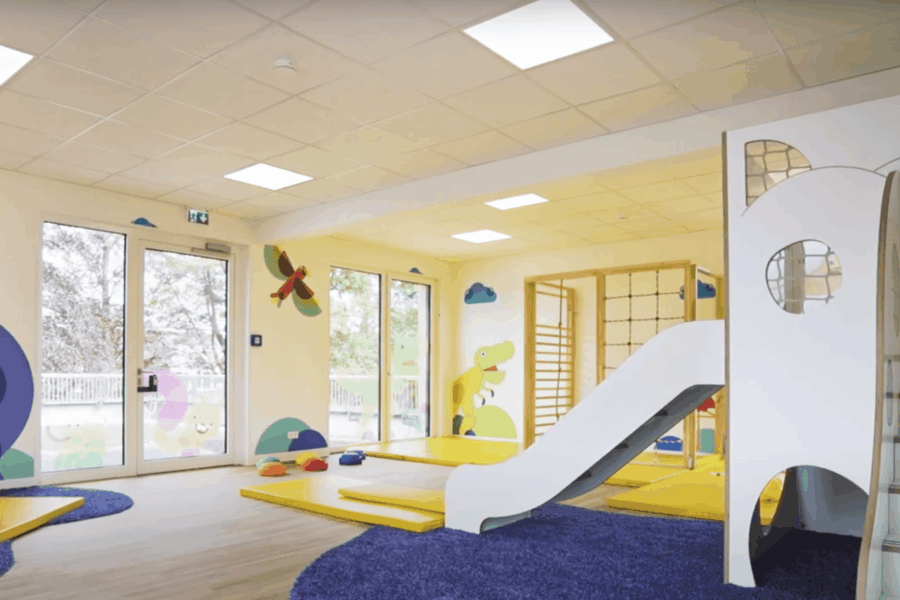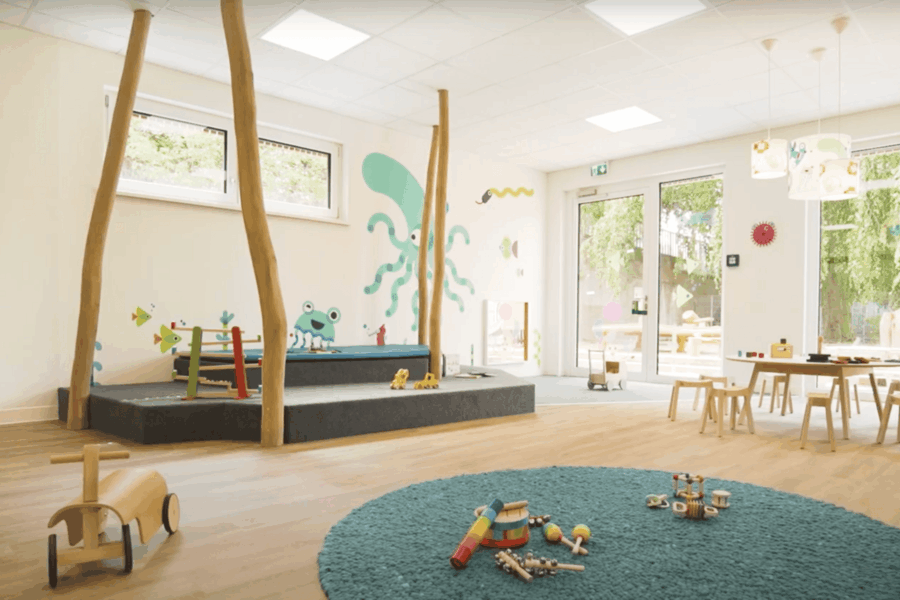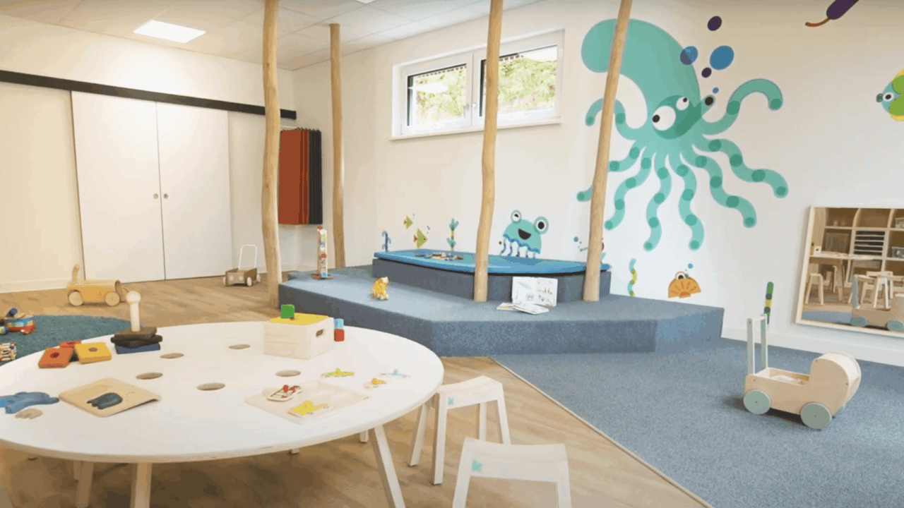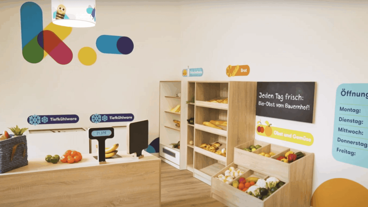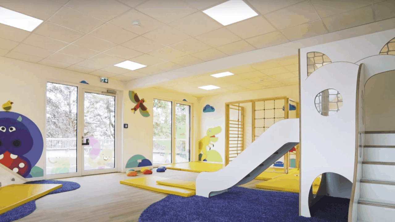 Bei uns im kinderzimmer Lehmberg finden Kinder eine anregende Umgebung zum Spielen und Entdecken. Unsere Räume sind kindgerecht, funktional und mit viel Liebe zum Detail eingerichtet. Ein besonderes Augenmerk liegt auf unserem Bewegungsraum im zweiten Stock. Dort können die Kinder an einer Kletterwand, einer Rutsche und einer Sprossenwand ihre motorischen Fähigkeiten entwickeln und sich austoben. In jeder Elementargruppe laden eine Spielküche oder ein Kaufmannsladen zu Rollenspielen und zum kreativen Miteinander ein. Diese Bereiche fördern die Fantasie und soziale Kompetenzen. Auch die Bedürfnisse der jüngsten Kinder in den Krippenräumen werden berücksichtigt. Musikinstrumente ermöglichen erste Klangerfahrungen, transparente Boxen mit Bildern erleichtern die Orientierung und gemütliche Ecken bieten Rückzugsmöglichkeiten. Hier wird jeder Tag besonders.