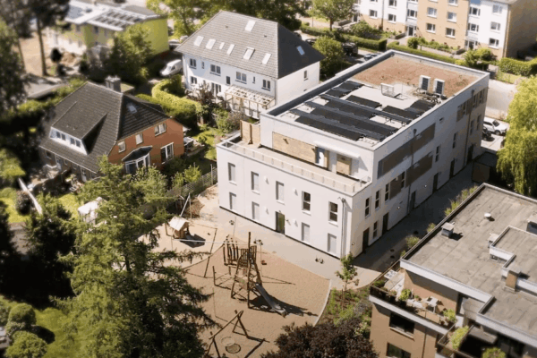 Unsere Kita ist nicht nur ein wahrer Kindertraum – das kinderzimmer Liliencronstraße ist auch ein ganz besonderes Neubauprojekt, das moderne Architektur und Nachhaltigkeit miteinander verbindet. Geplant als energieeffizientes Gebäude der Effizienzhaus-Stufe 40 mit Nachhaltigkeits-Klasse (QNG-Siegel) und gebaut in umweltschonender Holzhybridbauweise ist unser Haus etwas ganz Besonderes. Das Highlight: Ausgestattet mit einer Luftwärmepumpe sowie einer Solaranlage erzeugen wir 80% unseres Energiebedarfs direkt selbst!