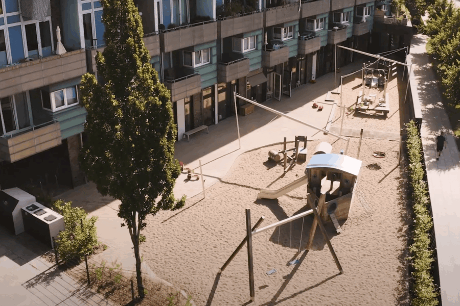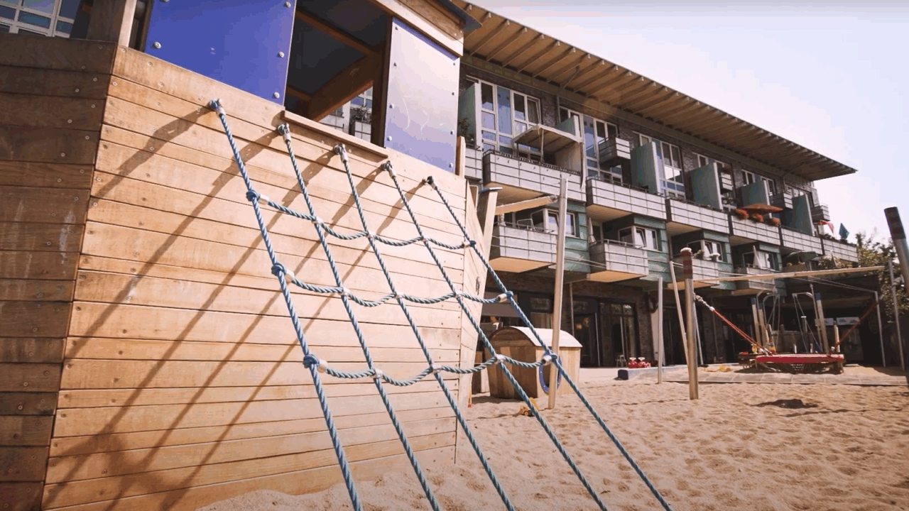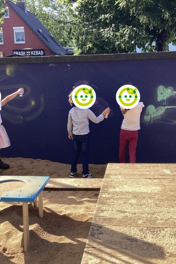 Vor dem Mittagessen wird noch einmal gewickelt und die Hände gewaschen. Danach folgt eine warme Mahlzeit, bevor sich die Krippenkinder zum Mittagsschlaf zurückziehen. In ruhigen Schlafräumen mit vertrauten Pädagog:innen an ihrer Seite bekommen sie eine Einschlafbegleitung. Die älteren Kinder erleben in dieser Zeit eine Ruhephase mit Geschichten, Yoga oder Erzählrunden – immer abgestimmt auf ihre Bedürfnisse. Am Nachmittag gibt es frisches Obst und die Kinder genießen das Spiel auf den großzügigen Außengeländen. Sandkästen, Klettergeräte und kreative Aktivitäten im Freien runden den Tag ab.