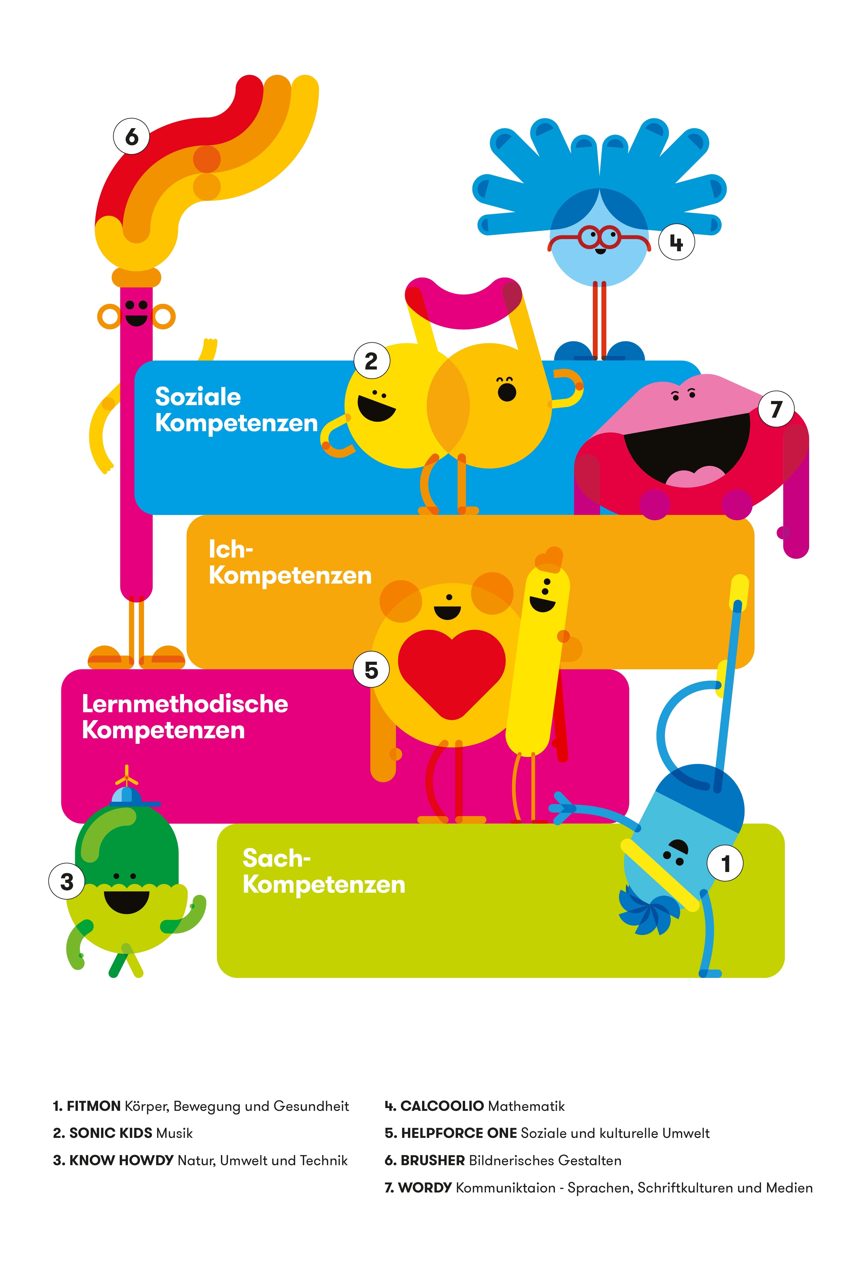 Wir Erwachsenen wissen es noch aus unserer eigenen Kindheit: Kinder lieben Superhelden. Deswegen haben wir uns für jeden Bildungsbereich stellvertretend einen ausgedacht. Kinder und Eltern wissen durch die Personifizierung immer, welchen Bildungsbereich wir gerade vermitteln. Die Helden verbinden Herz (persönliche Kompetenzen) und Hirn (inhaltliche Ziele) genauso, wie wir es im kinderzimmer tun. Das macht sie so einzigartig. In der Vorschule führen unsere kiziSuperhelden die Kinder spielerisch durch 7 Überthemen.